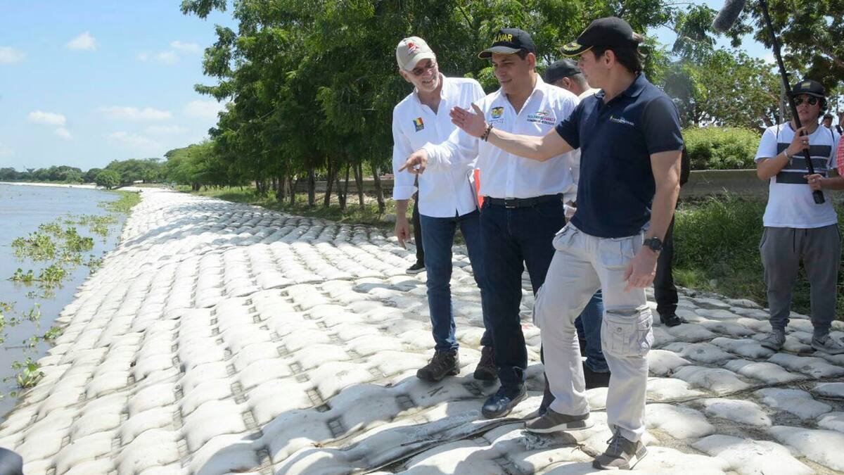 El gobernador del Atlántico, Eduardo Verano, en compañía del gerente del Fondo Adaptación, Iván Mustafá, y de su homólogo de Bolívar, Dumek Turbay, hicieron en la mañana de este viernes la entrega oficial de las dos obras de protección de los municipios del sur del Atlántico, ubicados a la ladera del Canal del Dique.