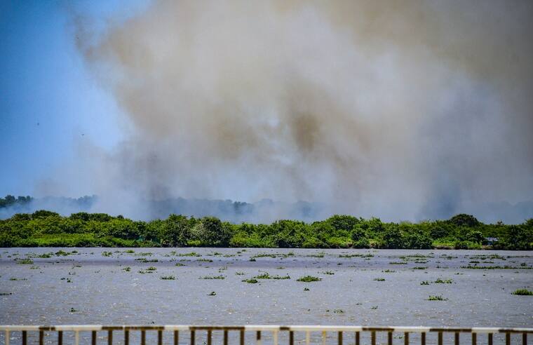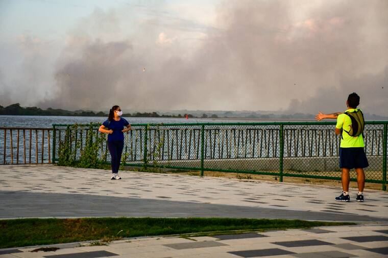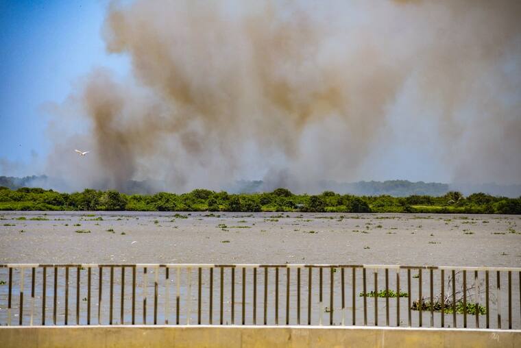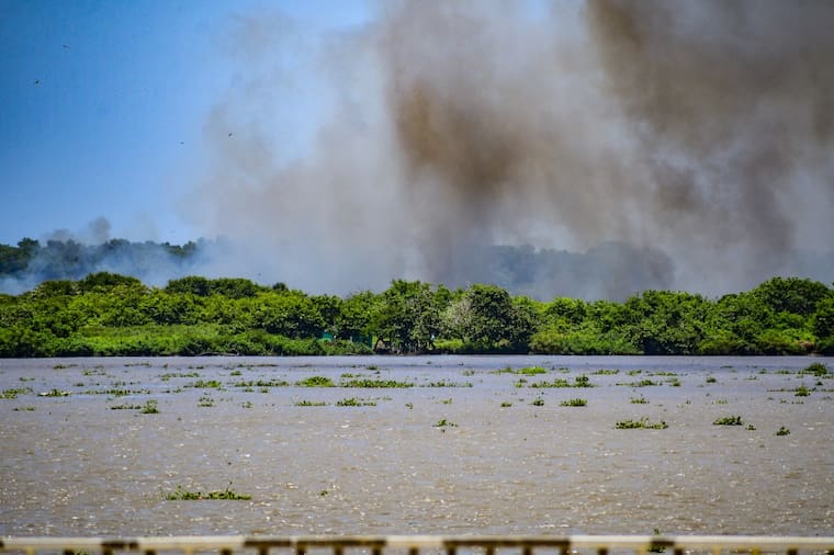 Este lunes se presentó un incendio en un sector del parque, frente a la zona de la Base Naval.