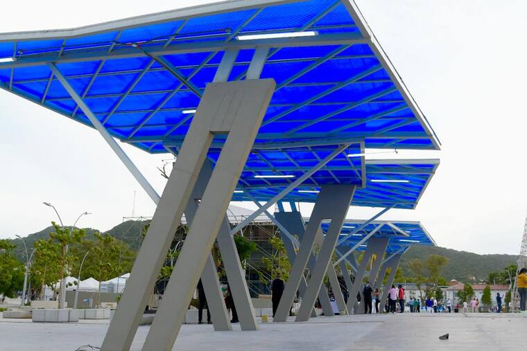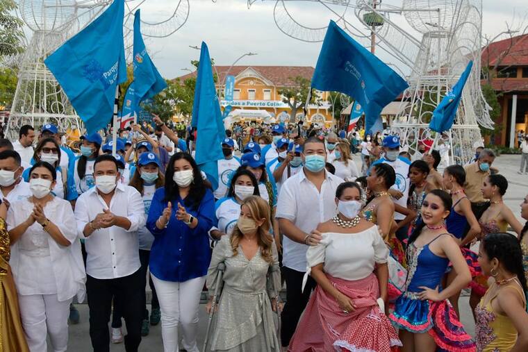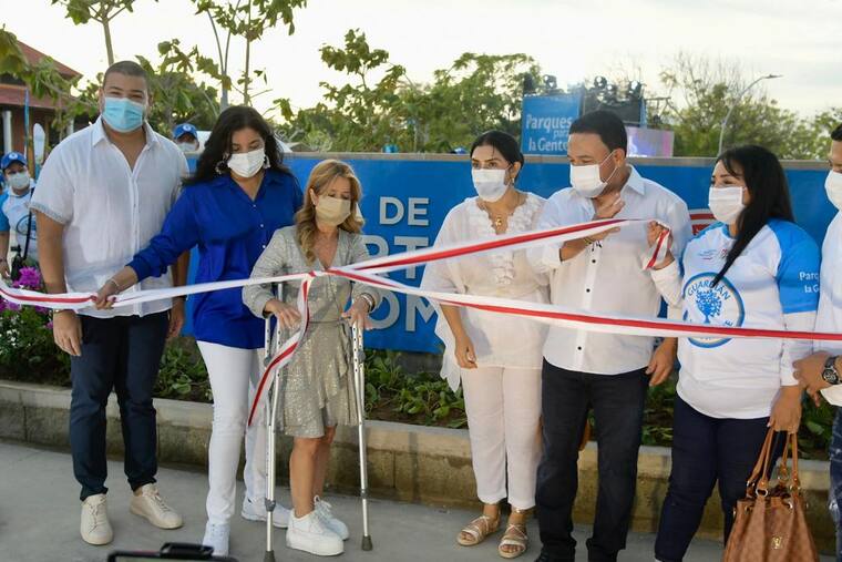 La gobernadora del Atlántico, Elsa Noguera, presidió la inauguración de la Plaza municipal y el encendido navideño.