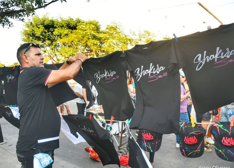 Las opciones de negocios son para todos. Así lo demuestran dos comerciantes venezolanos, que llegaron a Barranquilla procedentes desde Perú, acompañando a la gira de Shakira, la cual identificaron como una oportunidad de negocio muy importante.