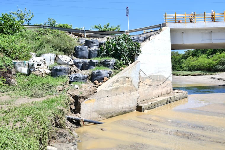 Aclaró que, aunque el puente está en buen estado, sí se evidencian daños en la aleta izquierda, la cual requiere intervención para evitar que el arroyo continúe afectando las aproximaciones a la estructura.
