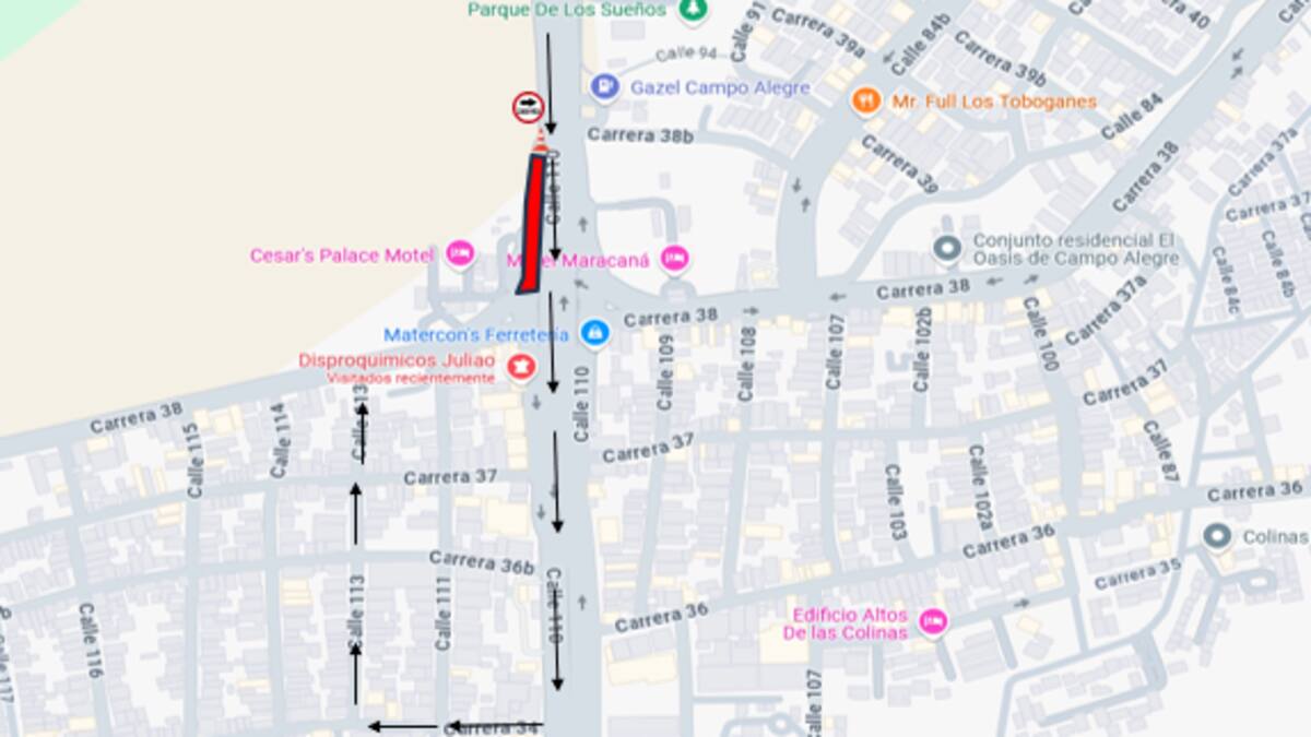 Además, mencionó que como ruta alterna los vehículos que transiten por la avenida Circunvalar deben tomar el puente en sentido sur, luego ingresar al carril occidental, girar a la derecha por la carrera 34 o 31 y, posteriormente, girar nuevamente a la derecha para tomar la calle 113 hasta la vía a Juan Mina.