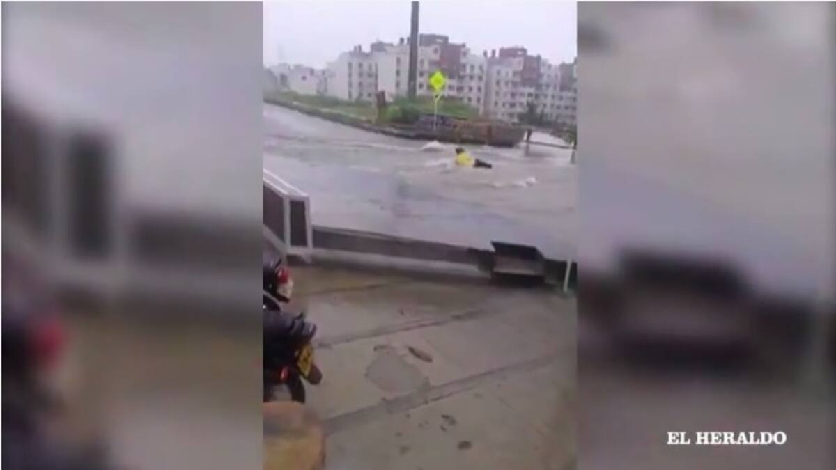En un video recibido a través de Wasapea a EL HERALDO, se ve el momento en el que un hombre intenta desafiar el arroyo Tivoli y es arrastrado.