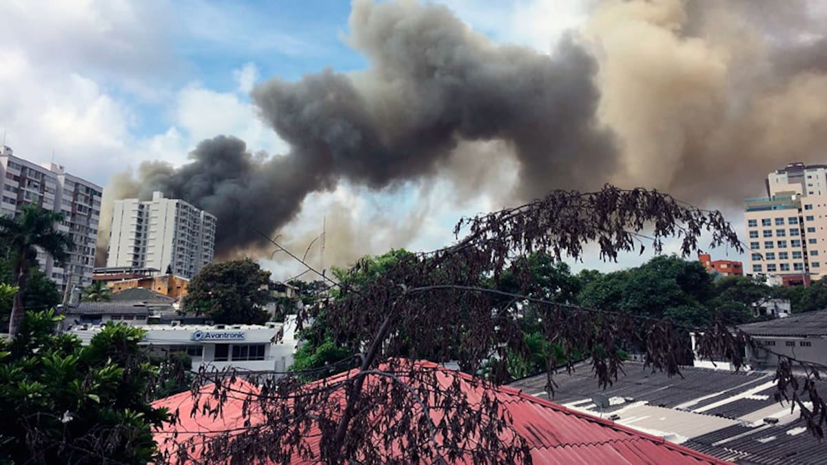 Bomberos atienden a esta hora la emergencia registrada la mañana de este jueves en la calle 74 con carrera 38D del barrio Betania. Se desconocen las causas de la conflagración que se habría originado en un local de venta de ropa del centro comercial.