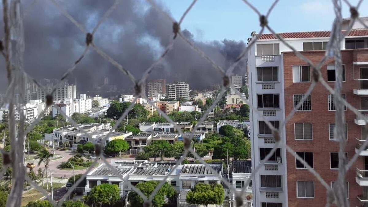 Cinco máquinas de bomberos atendieron la emergencia que se presentó en Frisby de la calle 98 con carrera 52B, en el Centro Comercial Luxury Plaza.
