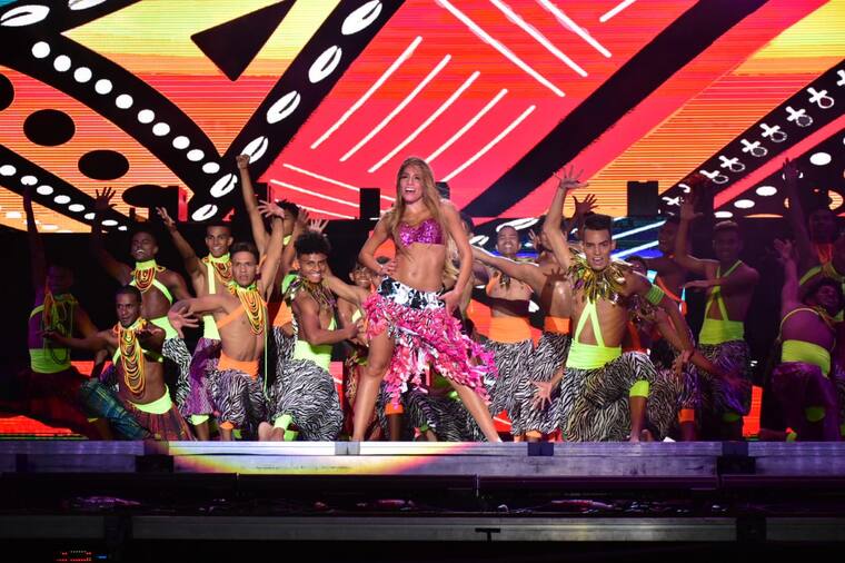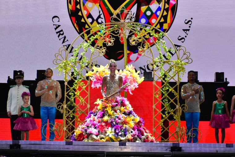 En el estadio Romelio Martínez, Isabella Chams Vega, soberana del Carnaval de Barranquilla 2020, vivió su gran noche de coronación. Ruben Blades será el artista principal del evento.