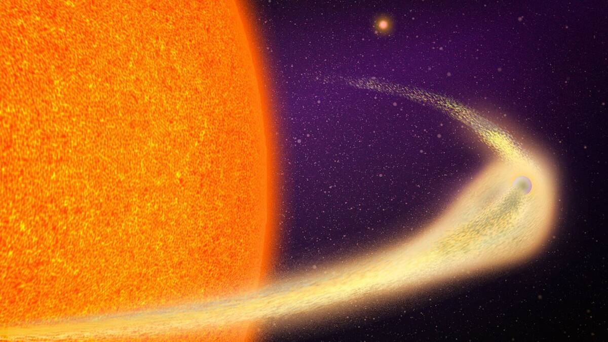 Dada la proximidad a su estrella, los investigadores estiman que la temperatura del planeta es de unos 1.600 grados Celsius, y que a medida en que se calienta de forma tan extrema los minerales de su superficie se evaporan y escapan al espacio, donde se enfrían formando la larga cola polvorienta.