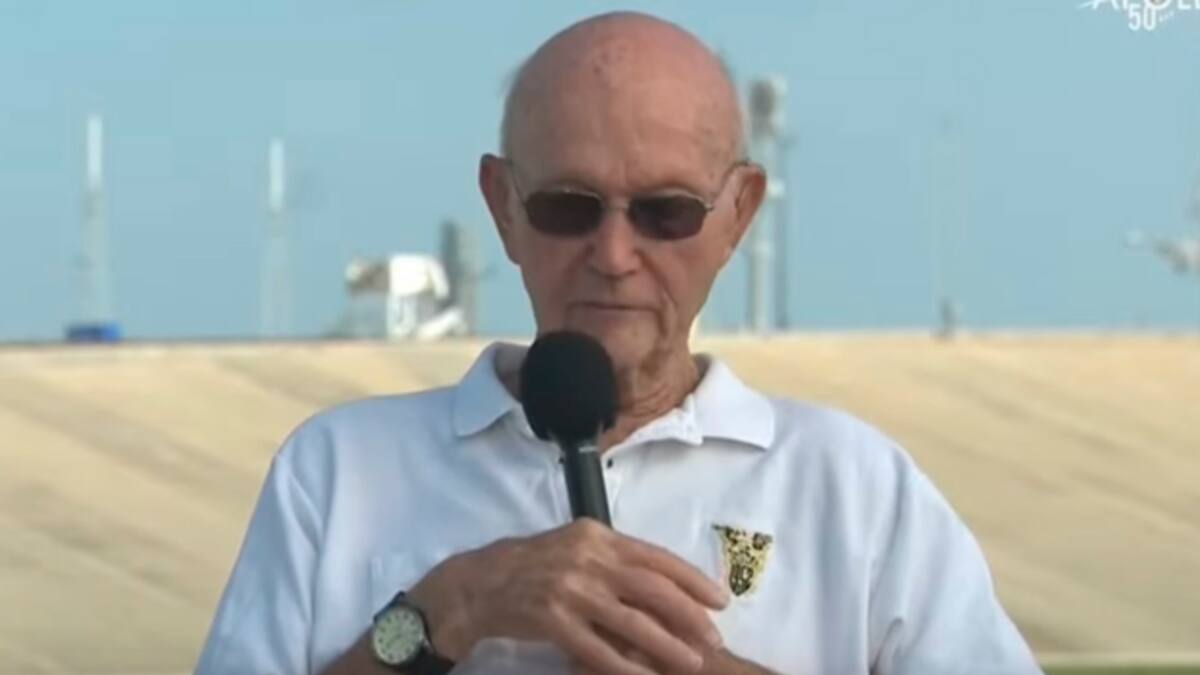 Collins estuvo este martes en la misma plataforma de lanzamiento, en una ceremonia que a su vez marcará el arranque de una semana de conmemoraciones de la misión Apolo 11.