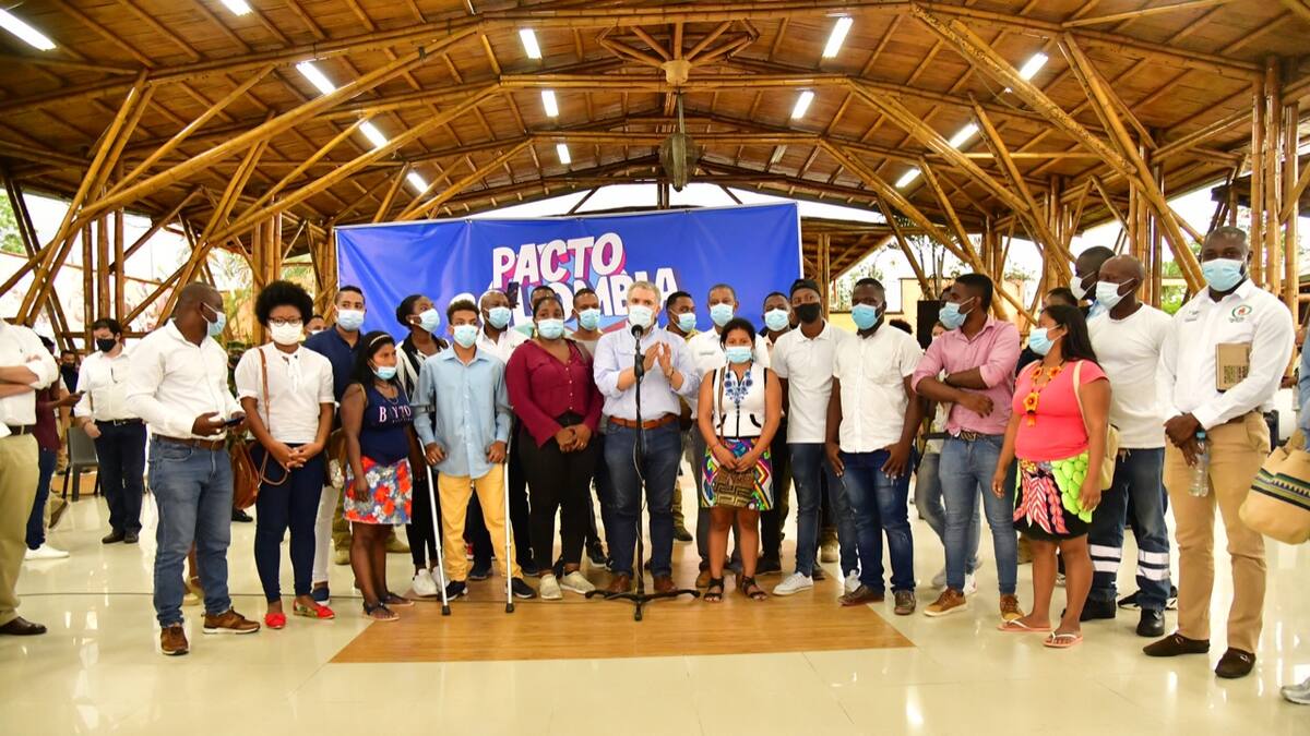 El presidente Iván Duque suscribió este martes en el Chocó varios compromisos en el marco del Pacto por la Juventud anunciado durante las protestas del paro nacional.