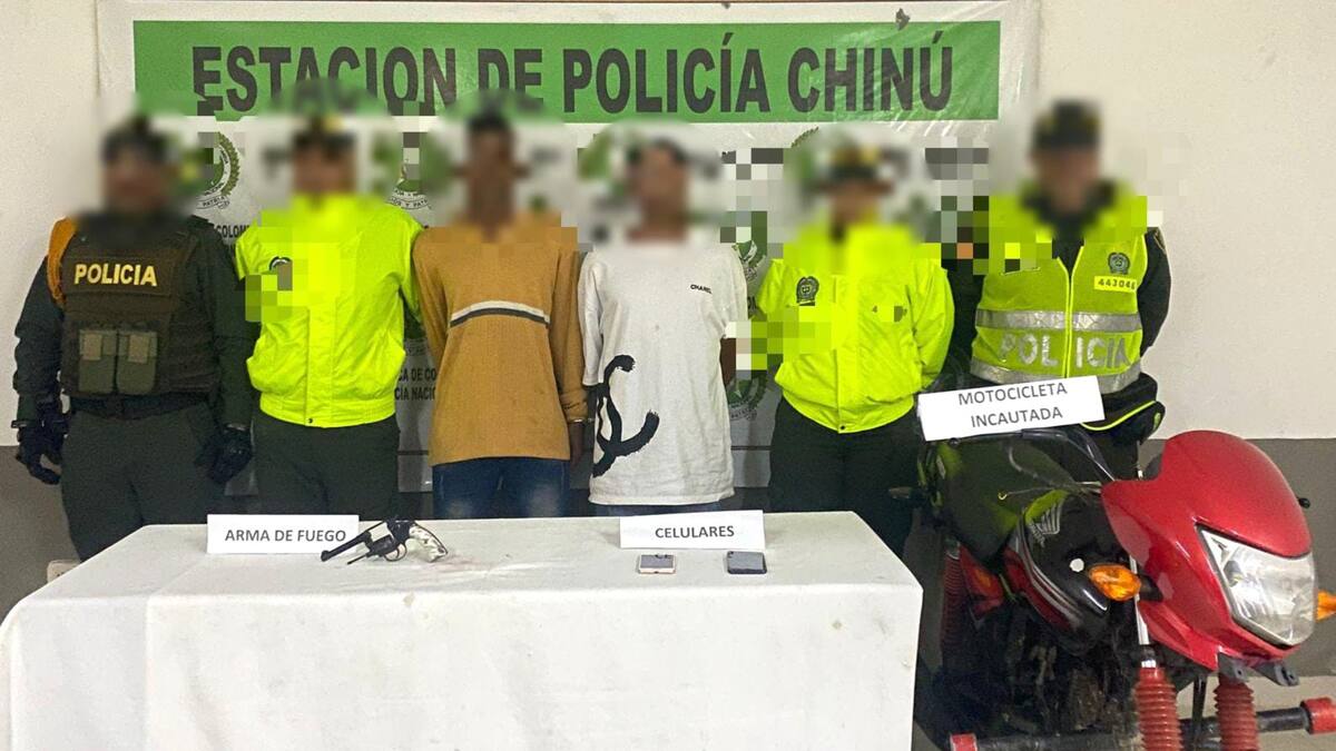 Dos hombres, uno de ellos conocido como ‘Camila’, fueron capturados por unidades de la Policía Nacional en el municipio de Chinú, Córdoba, tras ser sorprendidos portando un arma de fuego, tipo revólver.