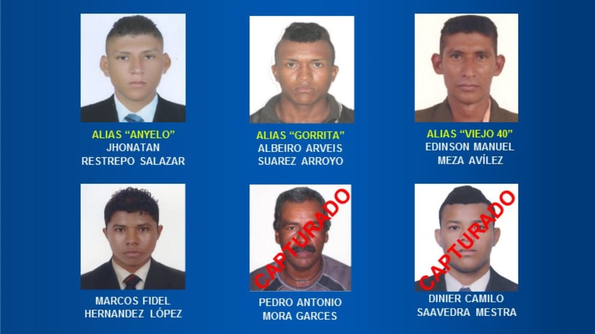 De los seis Más Buscados ya dos fueron aprehendidos, por lo que ahora la Policía Nacional redobla sus esfuerzos para ubicar a Jhonatan Restrepo Salazar, alias ‘Anyelo’; Albeiro Arveis Suárez Arroyo, alias ‘Gorrita’; Edinson Manuel Meza Avilez, alias ‘Viejo 40’, y Marcos Fidel Hernández López.