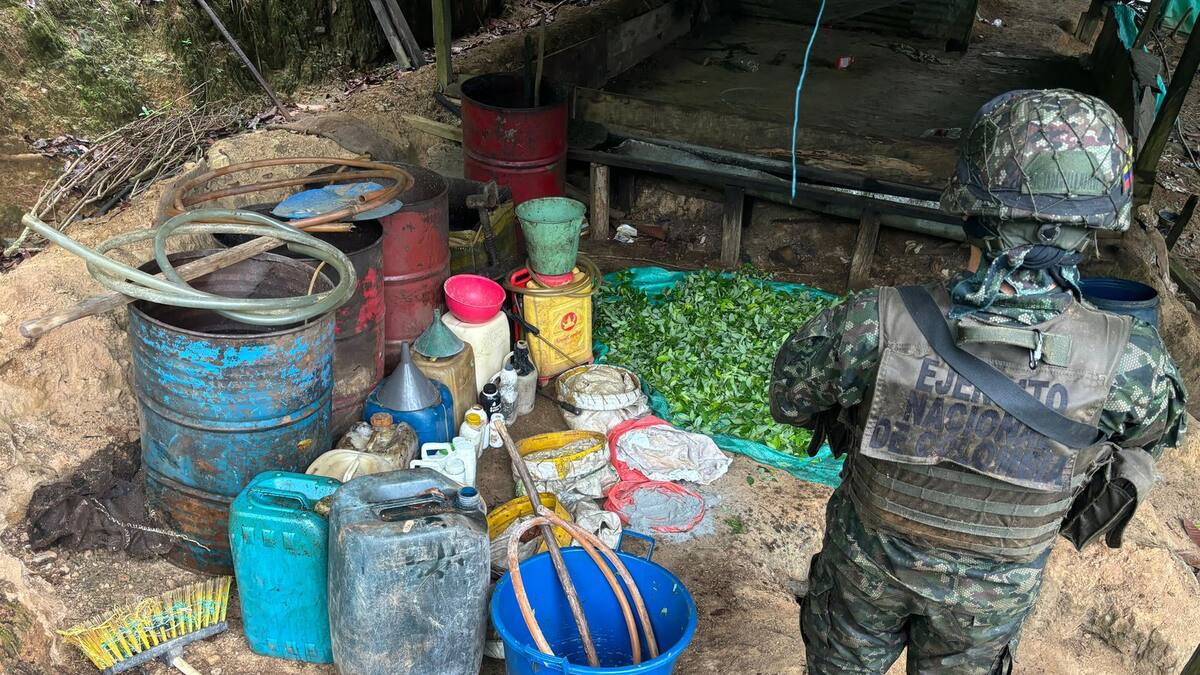 En las operaciones las tropas desmantelaron 6 estructuras con 300 kilos de hoja de coca raspada; 67 canecas, entre plásticas y metálicas; 365 galones de pasta base de coca en solución; 170 galones de gasolina, ACPM, 3 prensas artesanales, entre otros insumos y materiales para la producción del estupefaciente.