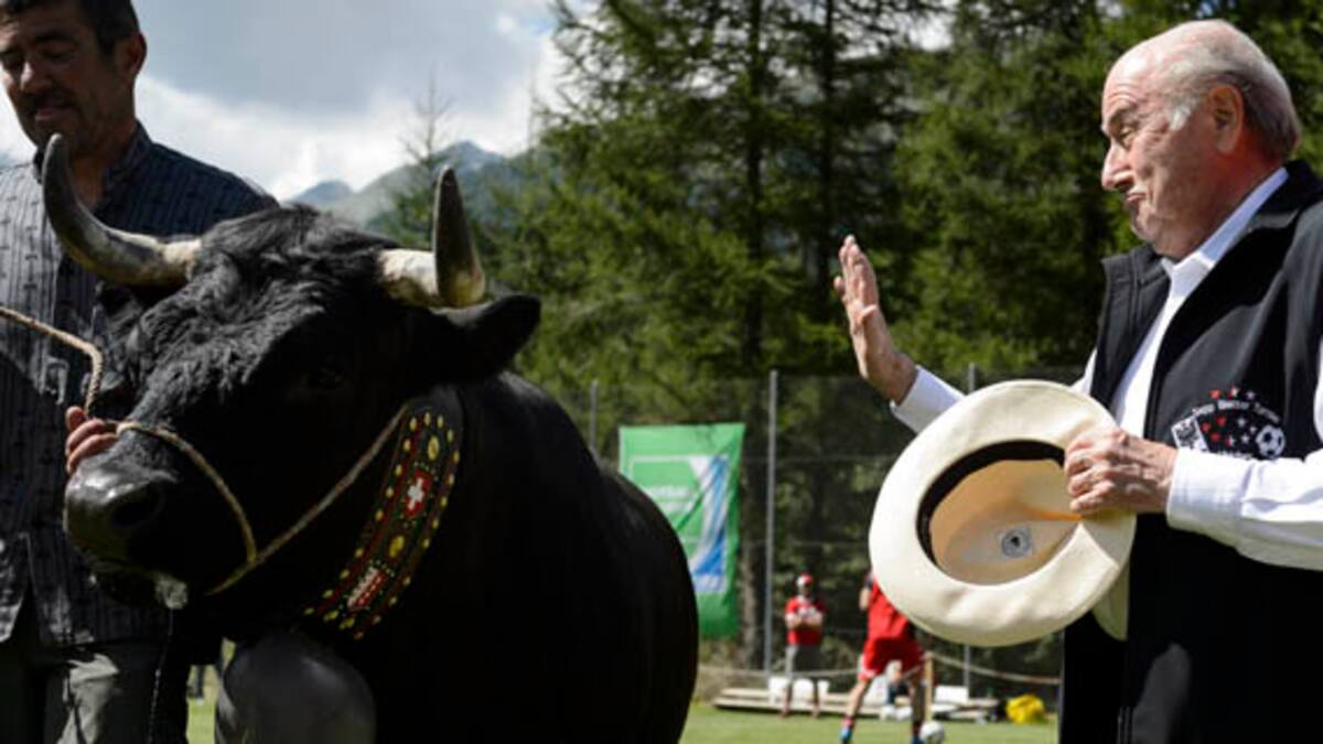 Joseph Blatter recibió una vaca de regalo, pero no dijo mucho sobre la situación de la Fifa, al acudir ayer a su torneo anual de caridad. El presidente de la Fifa fue homenajeado con una vaca llamada Colombo, por parte de las autoridades de la villa de Ulrichen, de donde proviene su familia. Blatter habló en el dialecto local de suizo-alemán a los 250 espectadores, y dijo que conservará la vaca para 'ver a muchos Colombitos en el futuro'. Por 18vo año, el líder del fútbol organizó un torneo para equipos locales en esta remota villa en las montañas en el estado de Valais. Blatter invitó a Michael Platini, quien acudió en 2013, pero el candidato a sucederlo en la presidencia de la Fifa no asistió. Joseph Blatter rehusó hablar sobre la situación legal del ente y las elecciones del 26 de febrero.