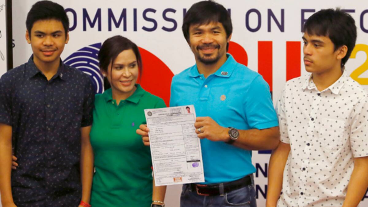 El boxeador filipino Manny Pacquiao entregó ayer a la Comisión Electoral de Filipinas su candidatura a un escaño en el Senado del país en las elecciones que se celebraran el 9 de mayo de 2016.