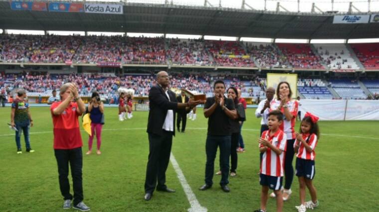 Un sentido homenaje se le rindió ayer al fallecido narrador deportivo Édgar Perea Arias, en la antesala del juego entre Junior y Chicó FC, en el estadio Metropolitano Roberto Meléndez.