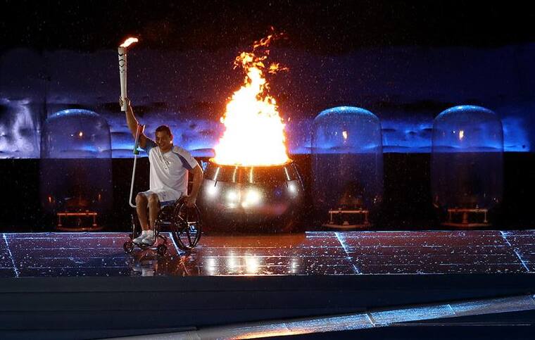 El momento más emotivo de la ceremonia llegó casi al final con el encendido del pebetero paralímpico. La llama, tras haber viajado a través de las cinco regiones de Brasil a lo largo de siete días, con 500 portadores, llegó al estadio para un último relevo en manos de cuatro deportistas con discapacidad brasileños: Antonio Delfino, Marcia Malsar, Adria Rocha y Clodoaldo Silva.