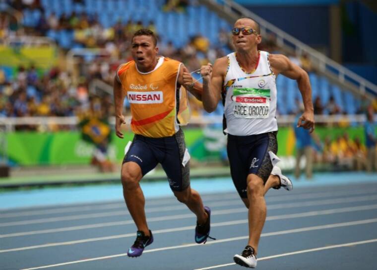 Arce, que asiste a sus primeros Juegos y corre con su guía, Arley Barrios, tuvo una marca de 11.68. Este registro es el mejor de su temporada. En su heat tres fue superado por el competidor de Namibia Ananias Shikongo y su guía Even Tjiviju, quien ocupó el primer lugar con un tiempo de 11.17. El segundo fue el brasilero Ricardo Costa de Oliveria y su guía Celio Miguel Da Silva; los locales pararon los cronómetros en 11.66.