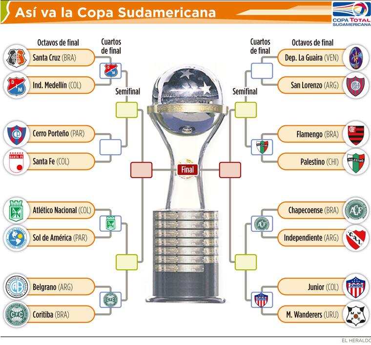 Otros equipos clasificados a cuartos de final son: Coritiba (BRA), Palestino (CHI) y Chapecoense (BRA) (ver cruce de enfrentamientos en la infografía). Aún falta por conocerse el ganador de la llave entre San Lorenzo de Argentina y Deportivo La Guaira de Venezuela, la cual se disputará hoy. El equipo gaucho gana parcialmente 2-1.