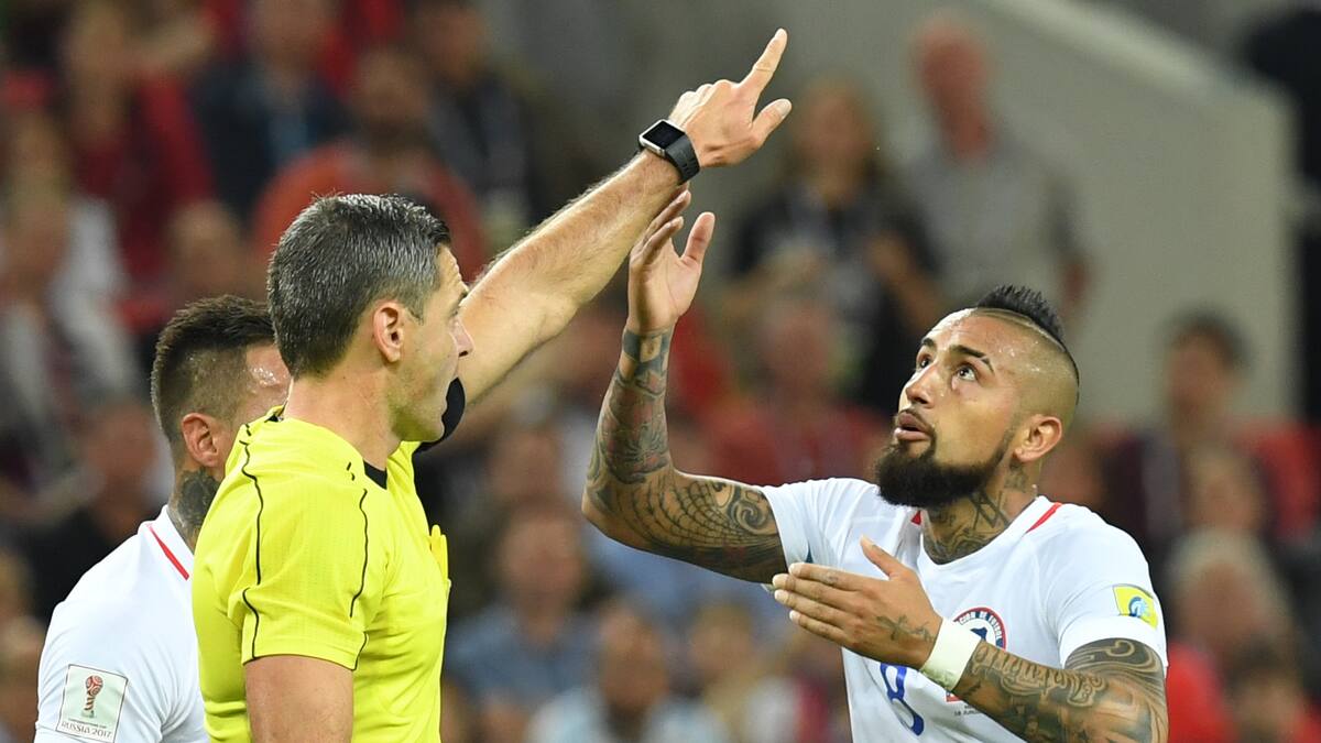 Los jugadores chilenos simulaban una partida a un videojuego sentados en el césped para celebrar el gol de Eduardo Vargas cuando el árbitro Damir Skomina interrumpió la fiesta para que se revisara la acción en el vídeo de asistencia. Lo anuló por fuera de juego y se desencadenó la tormenta.