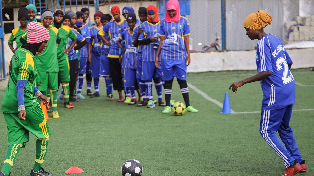 En la capital somalí Mogadiscio, poco después del amanecer, cuando el calor es aún soportable, un grupo de mujeres llega a una cancha de fútbol y se quita los hiyabs para vestirse con camisetas verdes o azules.