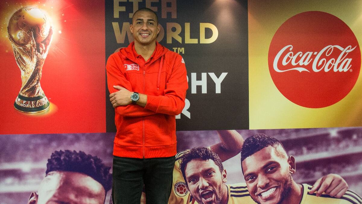 El primer acto fue en el aeropuerto tras descender de la aeronave, en medio de un helado aguacero. Almorzó en un restaurante de la localidad de La Candelaria, en el Centro Histórico de Bogotá, en compañía de directivos de la multinacional de bebidas, y de inmediato se dirigió a la Casa de Nariño, donde protagonizó un evento con el presidente Juan Manuel Santos. Volvió a develar el preciado galardón (que solo pueden tocar los campeones mundiales como él y los jefes de estado), rememoró algo de la gloria que saboreó en Francia-1998 y reiteró que 'Colombia puede hacer un buen papel' en territorio ruso.