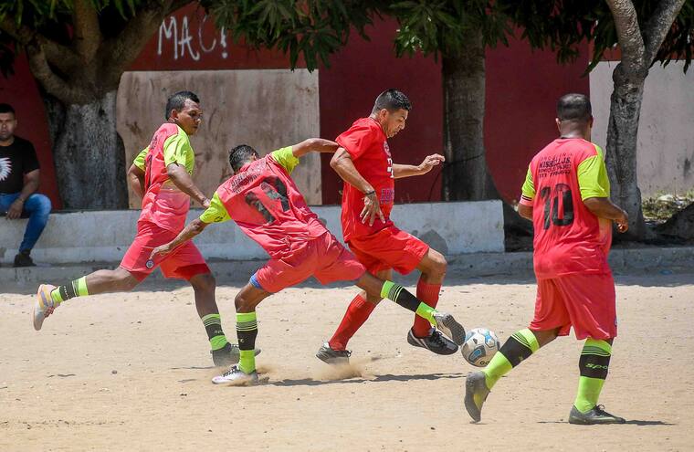 Aunque las principales ligas de fútbol y otros deportes en el mundo se detuvieron por la pandemia, en las canchas de balompié de Barranquilla la acción continuó como si nada este domingo.