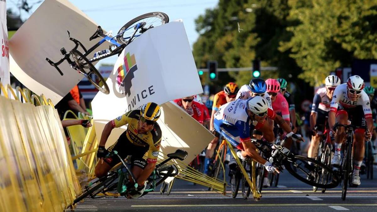 El ciclista del Deceunick-Quick Step chocó contra las vallas cuando buscaba un hueco en el sprint por la parte derecha de la carretera y fue cerrado por Groenewegen, que ganó el sprint pero fue descalificado por la organización de la Vuelta a Polonia, que decidió declarar a Jacobsen ganador de la etapa.