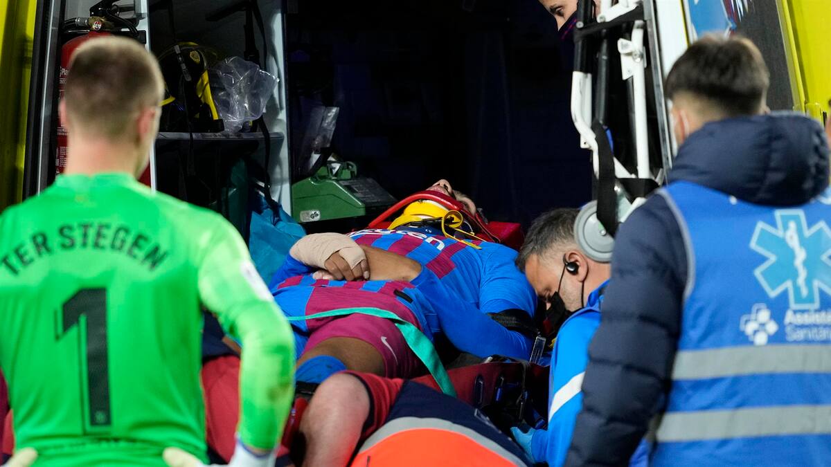 Araújo tuvo que ser evacuado en ambulancia en el minuto 62, después de sufrir un golpe en la cabeza en un encontronazo con su compañero Gavi.