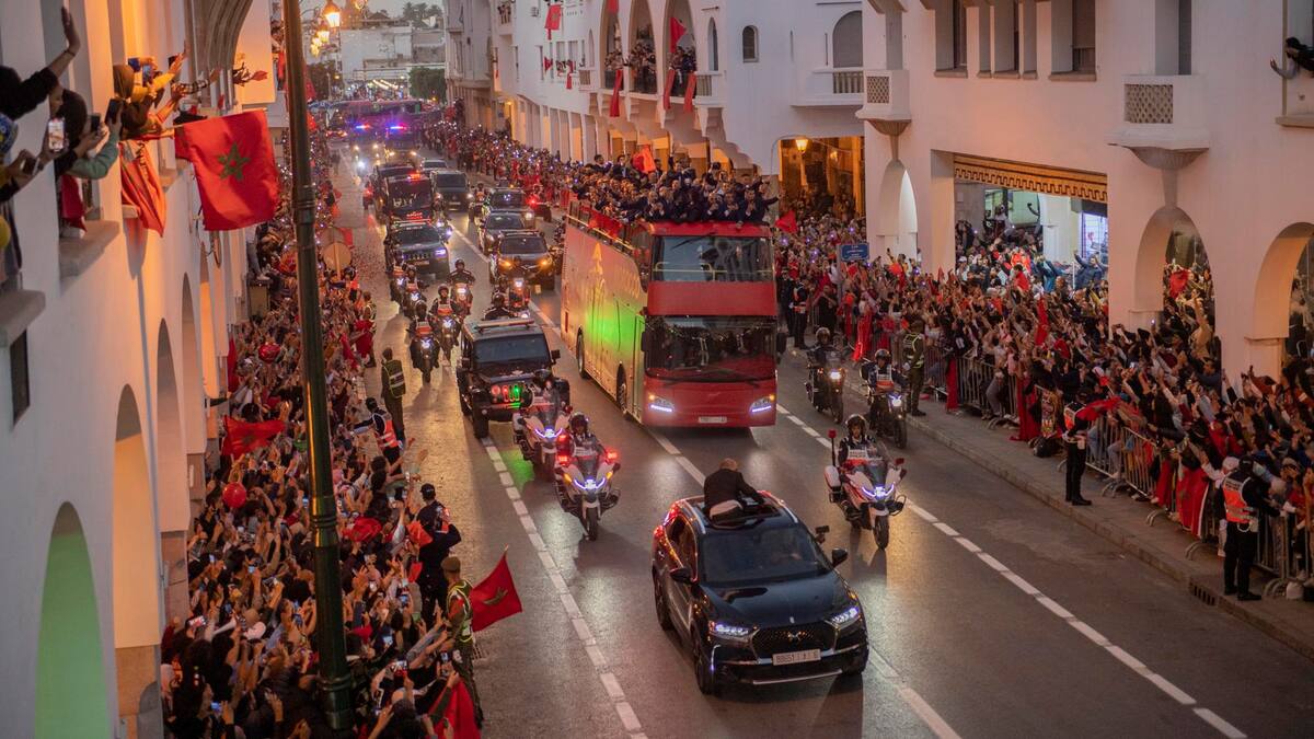 Entre aplausos y ulules de alegría, decenas de miles de marroquíes dieron la bienvenida como héroes en las calles de Rabat a los miembros de su selección nacional tras alcanzar la cuarta posición en el Mundial de fútbol de Qatar 2022, una meta que ningún país africano o árabe había logrado en la historia del campeonato.