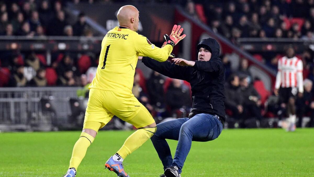 Un espectador del partido PSV-Sevilla, que el equipo español perdió 2-0, aunque pasó a los octavos de la Liga Europa por el 3-0 de ventaja que llevaba de la ida, saltó al césped del Philips Stadion en el tiempo añadido y agredió al portero sevillista Marko Dmitrovic, antes de ser reducido por la seguridad del estadio.