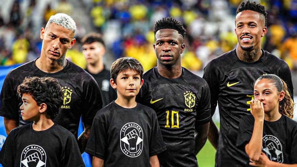 Vestida de negro por primera vez en su historia, la selección brasileña goleó este sábado a Guinea por 4-1 en un amistoso jugado en España en el que el protagonista fue la lucha antirracista en apoyo al madridista Vinicius Júnior, que marcó de penalti.