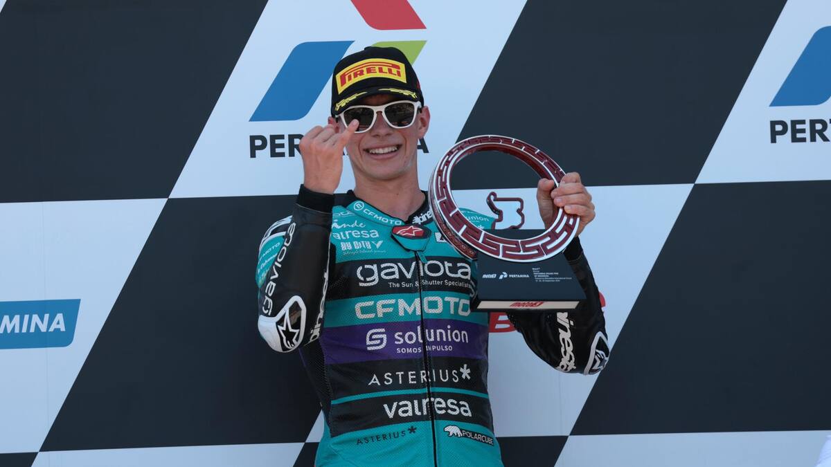 David Alonso se podría convertir en el primer colombiano campeón del mundo con apenas sumar tres puntos más en el circuito japonés ‘Twin Ring Motegi’ que su rival más directo, Daniel Holgado (Gas Gas) -sexto-, tras imponerse al fuerte calor y a los rivales de turno en Mandalika, en donde le acompañaron en el podio los españoles Adrián Fernández (Honda) y David Muñoz (KTM).