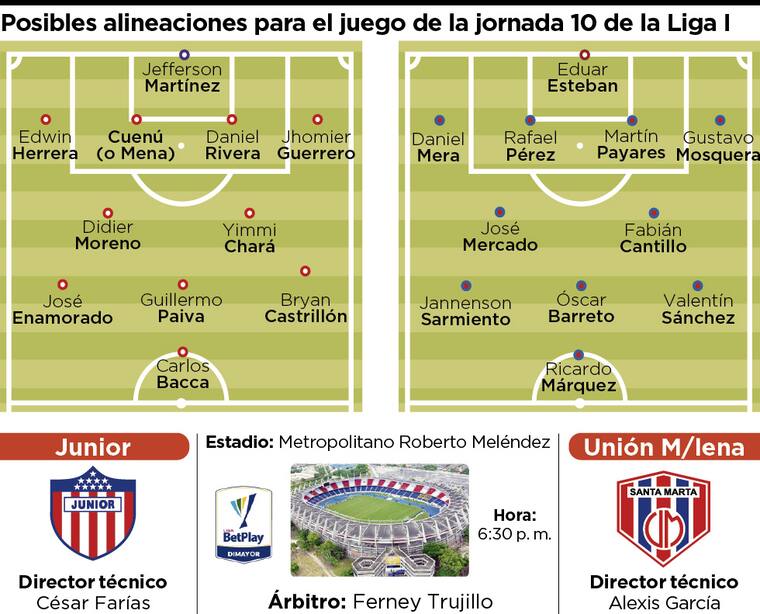 El resto del equipo sería el mismo que ha venido jugando, con Yimmi Chará en primera línea, Guillermo Paiva como media punta y José Enamorado y Bryan Castrillón como extremos.