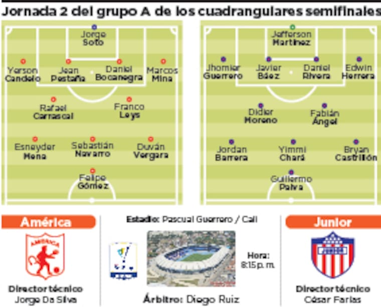 El encuentro de esta noche entre América y Junior será dirigido por el árbitro Diego Ruiz, del Meta, y contará con transmisión a través del canal Win Sports+.