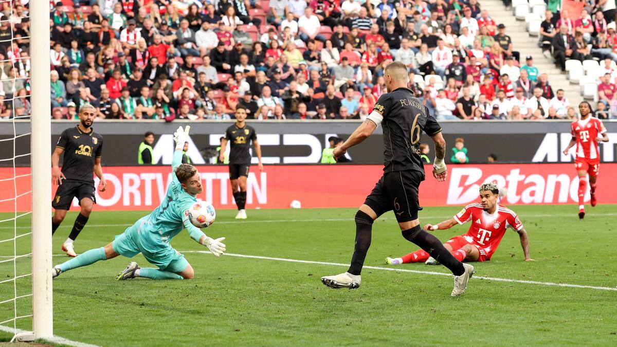 Luego, en el minuto 4 -después de que el Augsburgo se enredara en la salida tratando de sacudirse de la presión adelantada del Bayern- el balón le quedó a Olise en el borde del área, con el meta Finn Dahmen mal colocado, Sin embargo, el remate de Olise, aunque bien situado, fue demasiado débil y Dahmen logró llegar.