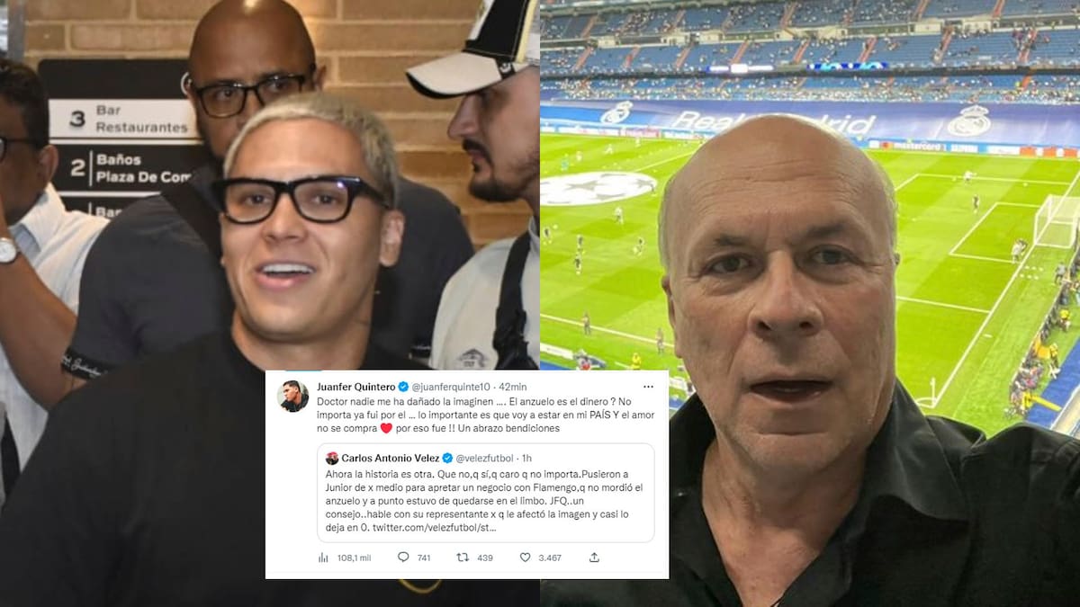 'Ahora la historia es otra. Que no, que sí, que caro, que no importa. Pusieron a Junior de por medio para apretar un negocio con Flamengo, que no mordió el anzuelo y a punto estuvo de quedarse en el limbo Juan Fernando Quintero. Un consejo, hable con su representante por que le afectó la imagen y casi lo deja en cero', trinó Vélez encima de un comentario que había publicado cuando el negocio estaba caído.