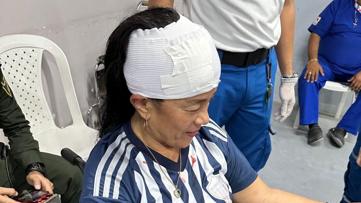 La mamá que fue a ver ‘Tu Papá’ terminó siendo atendida por la cruz roja, que la vendó en la cabeza.