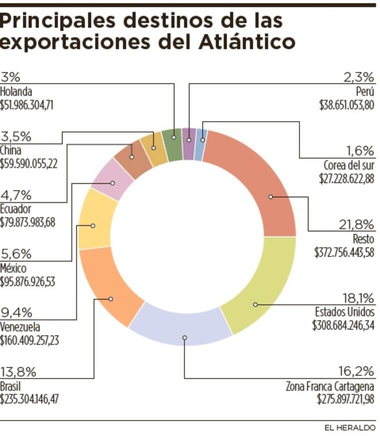 En total, incluyendo a las zonas francas, el número de destinos a los cuales el Atlántico exportó durante el año pasado fue 108, uno más que en el 2014.