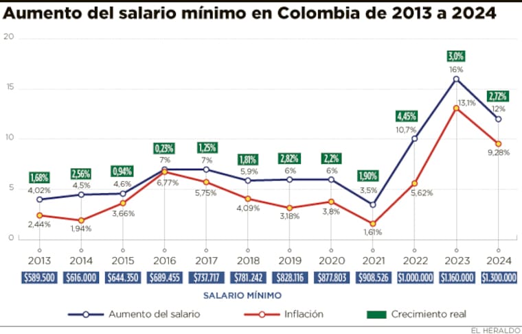 Cabe señalar que este aumento va a impactar a millones de colombianos que, según el Departamento Administrativo Nacional de Estadística (Dane), reciben un salario mínimo.