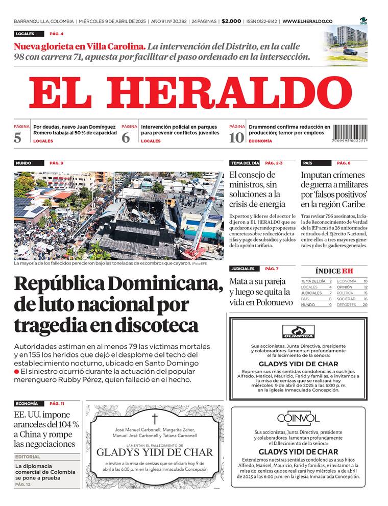 ContáctenosPortada y contraportada del miércoles 9 de abril de 2025.