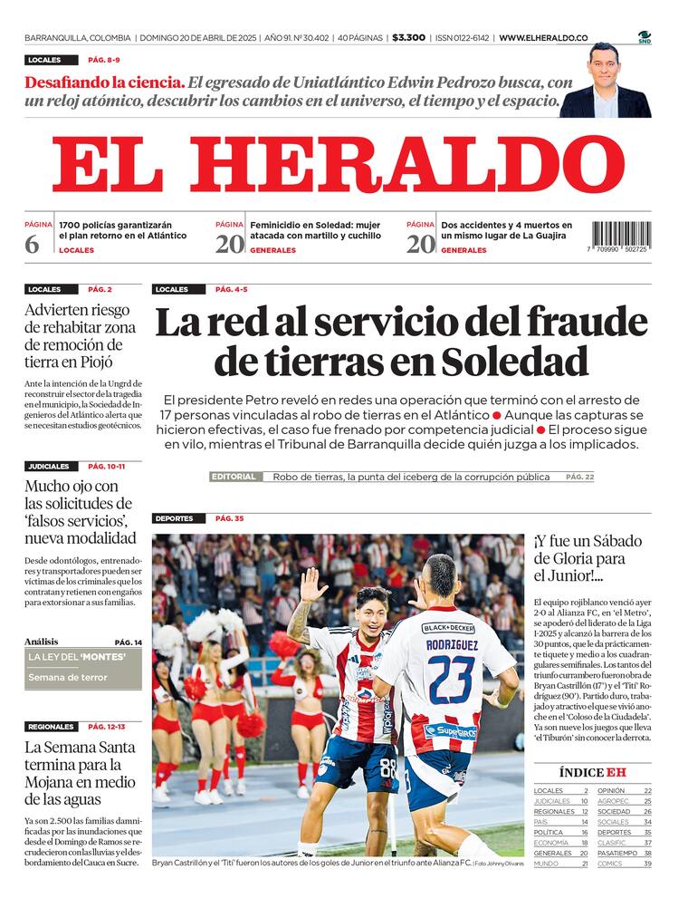 ContáctenosEdición impresa del domingo 20 de abril de 2025.
