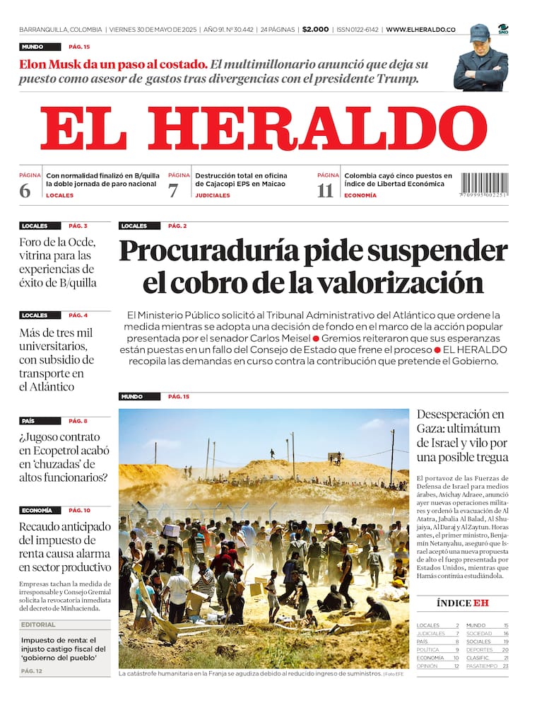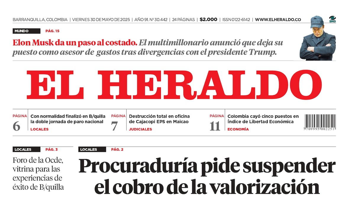 Portada de la edición impresa del viernes 30 de mayo de 2025.