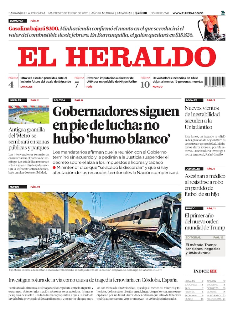 ContáctenosPortada y contraportada de EL HERALDO del martes 20 de enero de 2026.