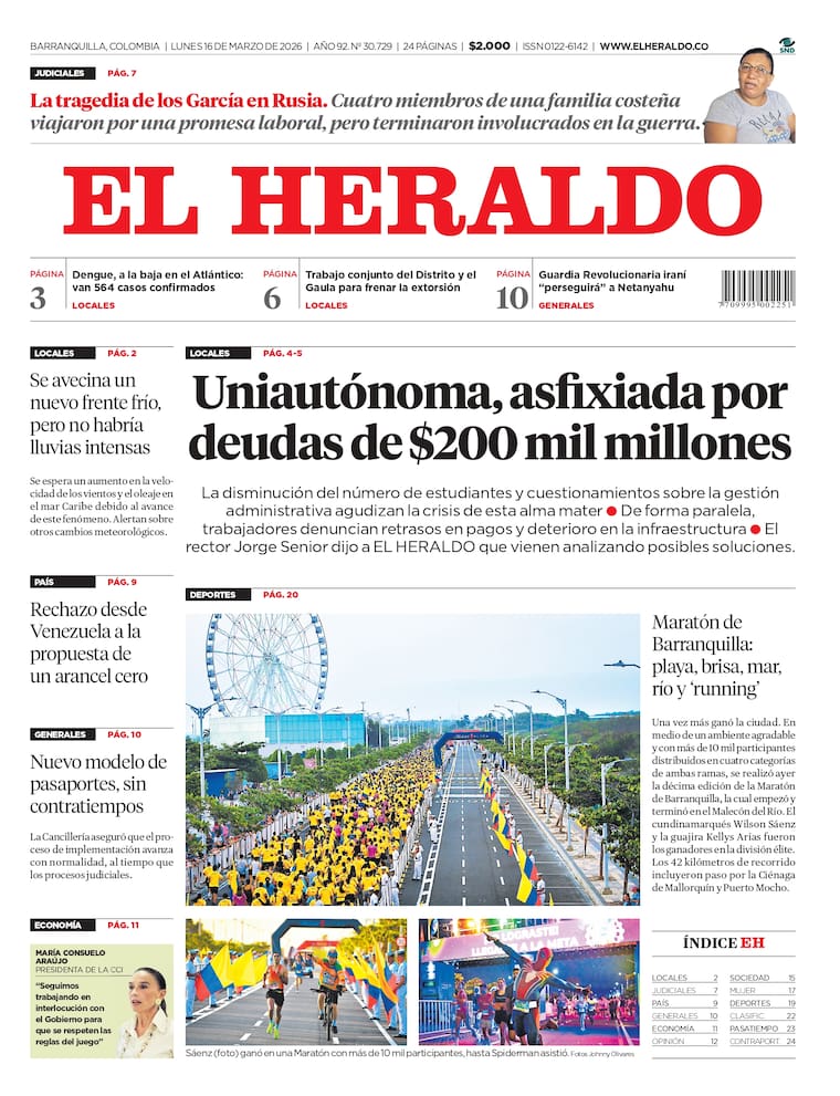 ContáctenosEdición impresa del lunes 16 de marzo de 2026.