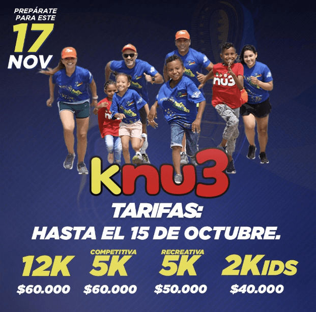 Las inscripciones para el recorrido están abiertas en diferentes gimnasios de la ciudad como Gym Box, Go Fitness, Living Fit Studio, Muévelo, en las oficias de nu3 y a través de la página www.nu3.co/knu3. La participación en los recorridos tiene un valor de 50 mil y 60 mil pesos.