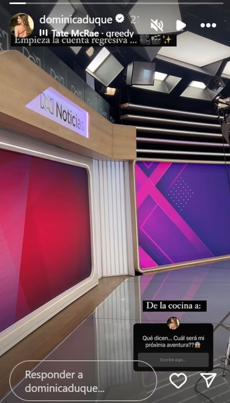 Empieza la cuenta regresiva. ¿De la cocina a?”, fue su escrito en un video donde mostraba el set de grabación del Noticiero RCN y un libreto.