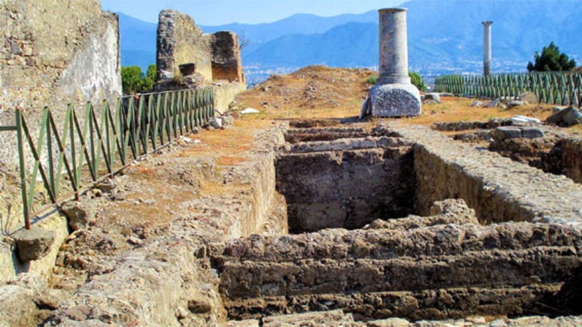 Una parte del templo de Venus y de la necrópolis de Porta Nocera, en el complejo arqueológico de Pompeya (sur de Italia), sufrieron durante la noche de hoy una serie de derrumbes provocados, según apuntan los medios italianos, a las fuertes lluvias registradas en las últimas horas en la región.