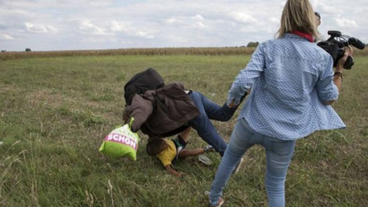 En otras imágenes se la ve pateando a varios refugiados, incluida una niña.