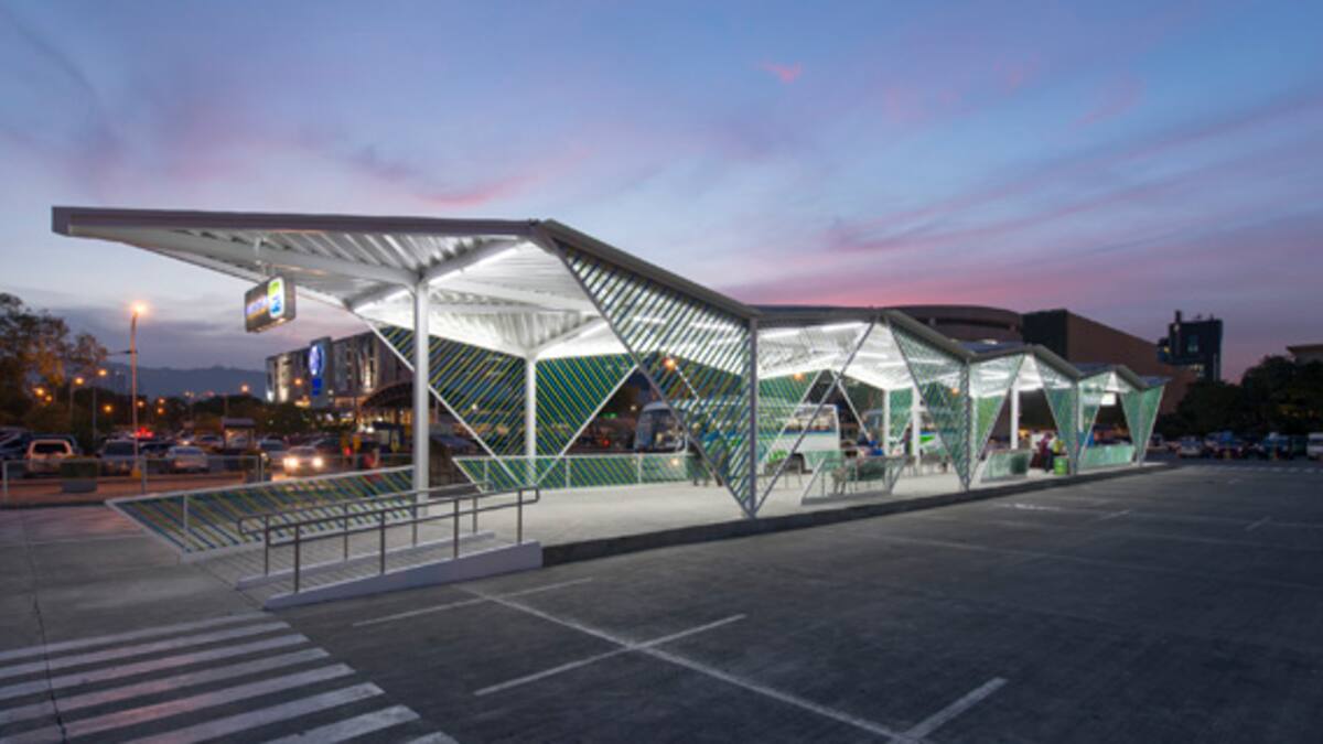 El módulo, compuesto por triángulos, fue utilizado en las paredes y los techos, lo que permitió construir paraderos más largos, angostos y anchos que se adecuaron sin importar su ubicación en diferentes vías de la ciudad.