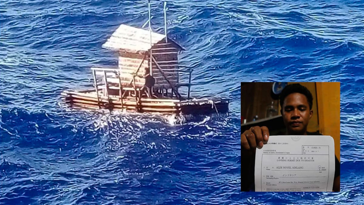 La epopeya de Aldi Novel Adilang comenzó a mediados de julio mientras trabajaba solo sobre una balsa de pesca que contaba con un cobertizo.